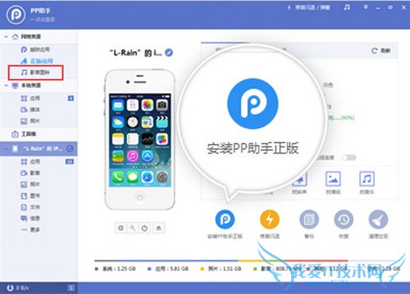 打开PP助手--铃声--选择铃声--导入