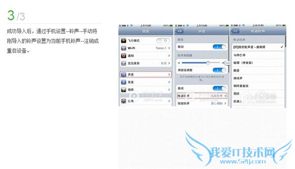 成功导入后,通过手机设置--铃声--手动将刚导入的铃声设置为当前手机铃声--注销或重启设备。
