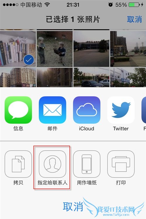 STEP3:点击“指定给联系人”图标,从通讯录中选定联系后,会再提示选取你要分享的图片内容。
