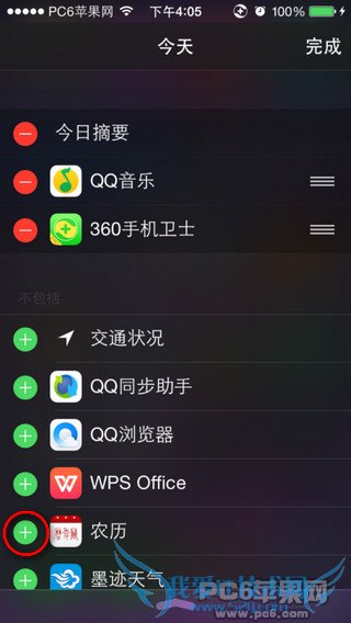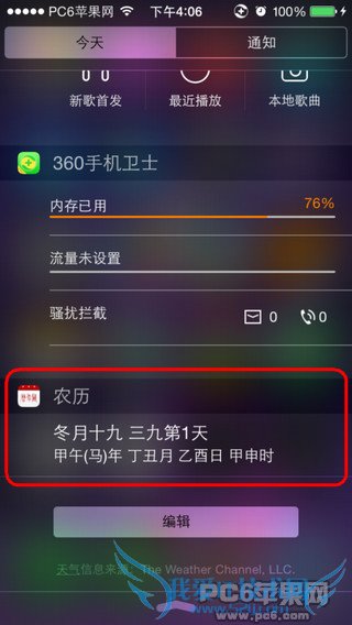 5、编辑完成后,就可以看见“农历”出现在通知中心了,十分方便。