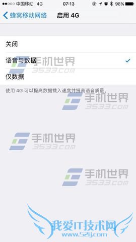 1)一是上文所说的官方推送更新,一般符合条件的用户在将手机接入网络后会自动收到新的运营商配置文件推送,如果没有收到的话,可以前往“设置-通用-关于本机”然后双击运营商名称即可,更新完成在蜂窝移动网络里选择“语音与数据”,即可启用VoLTE功能。