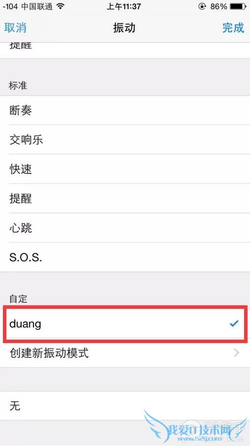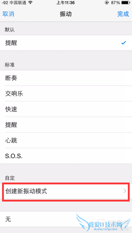 点击振动,在这里我们可以选择预置的振动模式,或者自定义——创建新的振动模式,这里就是你发挥创意的地方了。