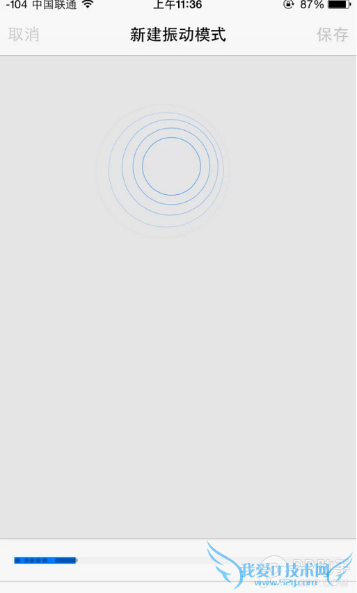 在这里我们就是通过触摸屏幕中央区域来定义如何振动,当手指按下即开始计时,最长可以录制十秒,于是我们就能得到个性化的振动提醒方式了。