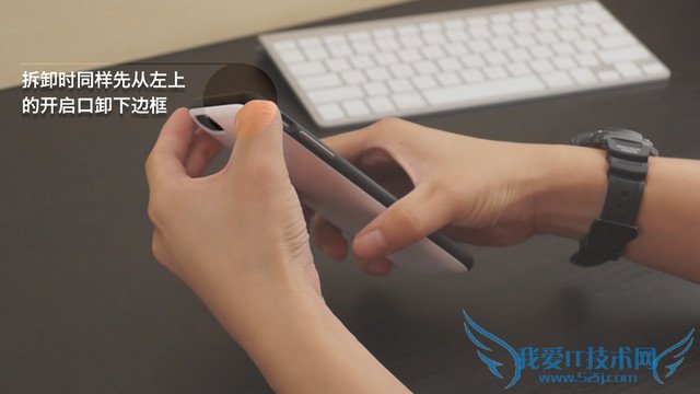 酷壳iPhone6 Plus款采用边框与后壳分离的设计,安装时需要先将边框卸下。