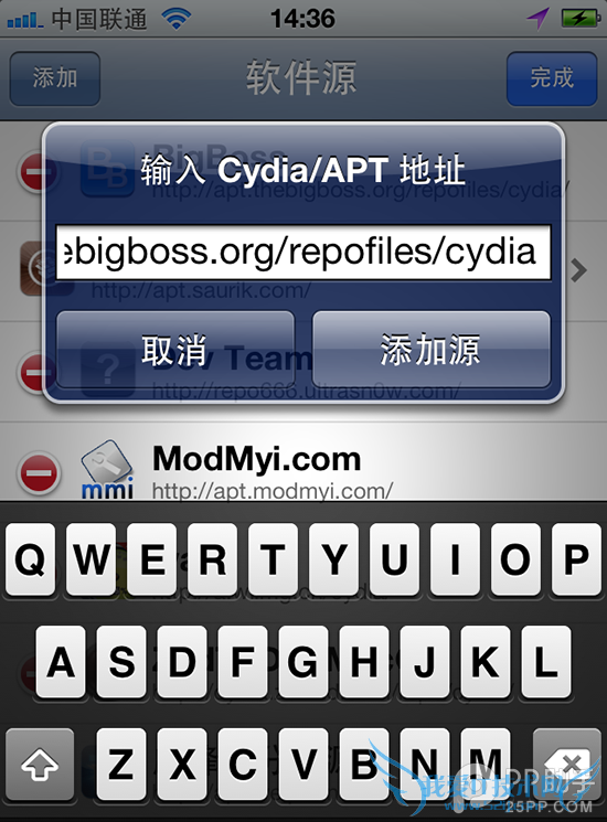 但是,如果你管理-》软件源-》编辑 将以上的地址填入以下的输入框 来添加BigBoss源,是不会成功的