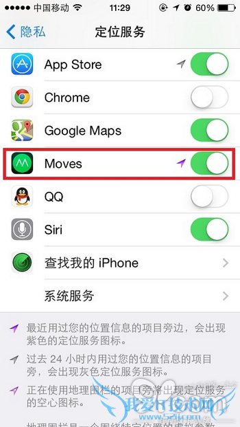 定位服务也是很耗电的一个功能,如果有的App不断的获取你的位置(设置——隐私——定位服务——有着紫色箭头的App代表现在正在获取你的位置),这些功能也会耗电;如果没有必要,就关掉它吧!