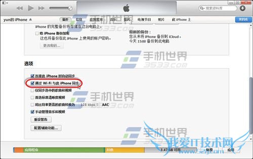 ¡¡¡¡1)´ò¿ª¡¾itunes¡¿£¬¹´Ñ¡¡¾Í¨¹ýWi-FiÓë´ËiPhoneͬ²½¡¿¡£(ÈçÏÂͼ)