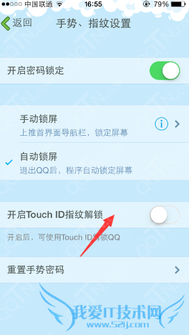 6、点击下方开启Touch ID指纹解锁即可;