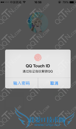 7、当大家退出QQ以后,在进入系统会提示以下信息,直接将手指放在touch上就可以解锁了哦!