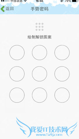 5、绘制解锁图案,这个是手势密码,设置过手势密码的童鞋可以直接所致指纹解锁;
