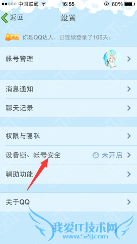2、在设置里进入账号安全功能;
