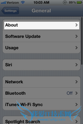 第一步:进入设置(Settings)菜单选择常用选项(General),然后选择关于(About),系统会自动进入下一页。