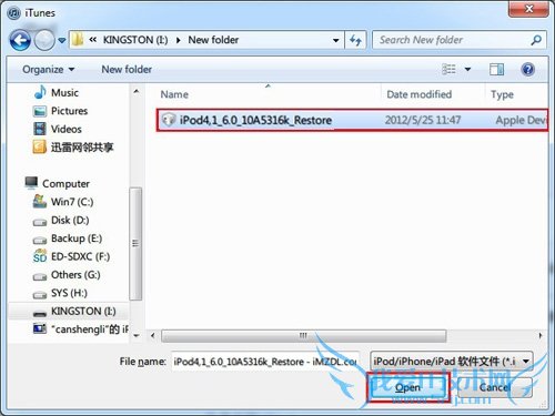 3、在弹出的窗口中,浏览并选择此前下载好的iOS8.1固件(格式为ipsw):