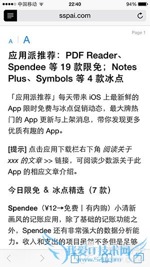 若要以简单易懂的方式解释 Reading List,大概可以类比各位熟悉的 RIL 应用如 Pocket 和 Instapaper。在浏览网页时发现一篇好文章想要保存下来稍后阅读可以将其添加进 Safari 内置的 Reading List,同时 Safari 自带的阅读模式可以强力去除一切干扰因素只保留文字,为阅读营造最专注和干净的环境。但 Reading List 相较于正统 RIL 应用来说最大的缺点便是其离线阅读不稳定,或许因为基于浏览器缓存,Reading List 中文章可以离线阅读的机率几乎是随机的。较可行的解决方法是添加文章后,在 Reading List 中点开文章加载一次。