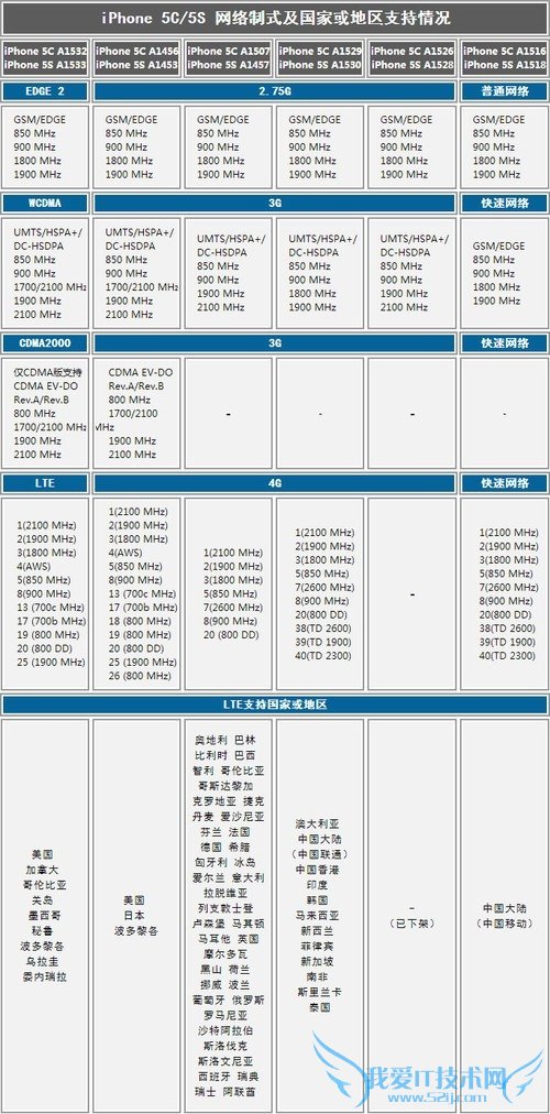 问题14:哪个版本型号的iPhone 5s支持的网络制式最全?
