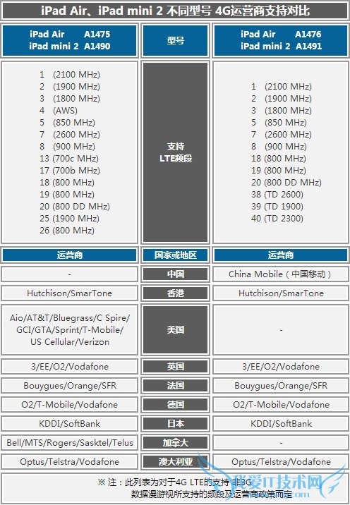 这个问题就比较复杂了,需要视各个国家的运营商具体情况而定。如果出国短时间旅游的话,那么笔者建议大家购买自己在国内网卡所对应的运营商。如果是出国长时间的学习或者工作生活,那么需要提前查好当地运营商所使用网络的制式,我们也为大家列出了iPad Air和iPad mini 2在各个国家所对应运营商的情况以及支持的制式。