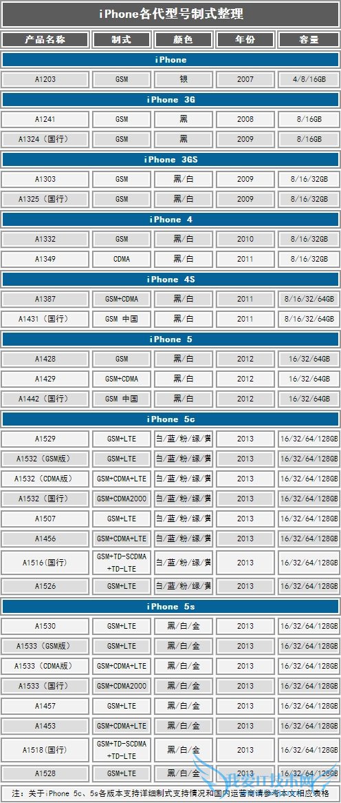 iPhone 5s其实一共有6个版本 其中A1533还分GSM和CDMA机型