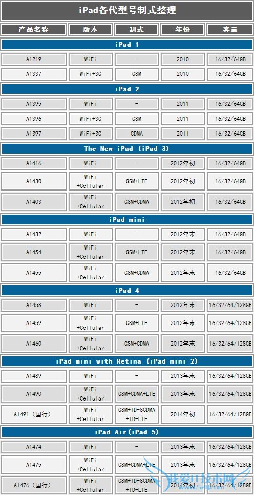 现如今无论手机还是平板电脑,采用iOS设备的用户数量一直居高不下,大部分的消费者垂青于苹果iOS设备简单易用的界面以及丰富的第三方软件。iPad时至今日已经从第一代进化到现在第五代的iPad Air,而iPhone也已经经历了七代来到了如今的iPhone 5S,那么在这么多型号的iPad、iPhone的身上,什么才是区分它们的唯一标示?如此之多版本、网络制式、外表却大体相同的iPad、iPhone们,我们究竟如何区分,如何选择购买呢?