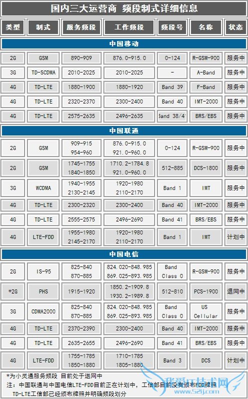 首先我们需要区分出究竟是2G、3G还是4G网络类型,接下来再逐一讨论相应网络类型的网络制式。目前2G网络三大运营商均是GSM制式,而3G网络联通为WCDMA、电信为CDMA 2000、而移动则为TD-SCDMA.接下来对于4G LTE网络来说,目前工信部对三家运营商仅仅颁发了TD-LTE的牌照,并且确定了频段的划分。