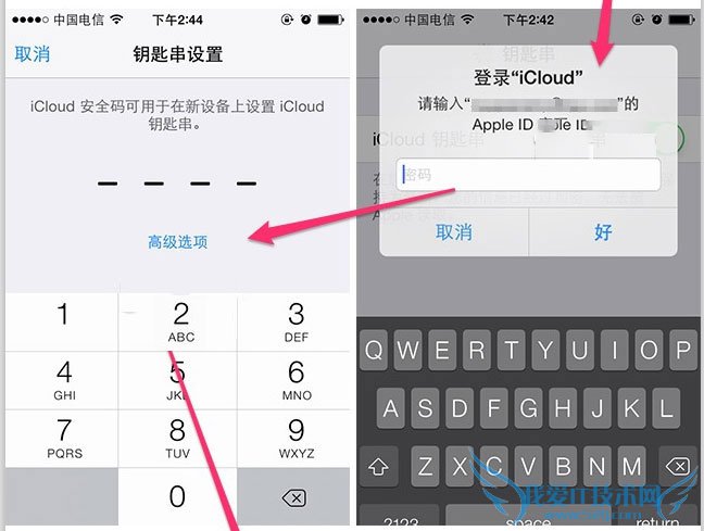 2)在弹出框输入iCloud密码登录,设置四位数的iCloud安全码,该密码主要用于以后在其他新设备上同步你的钥匙串。