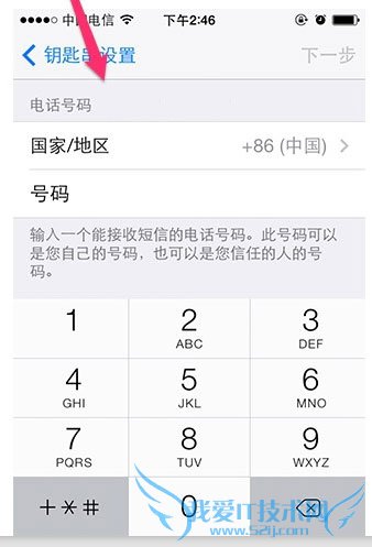 3)接下来系统会要求你输入一个电话号码,以接收钥匙串的二次短信验证码。再点击下一步,那么你在iPhone上开启 iCloud 钥匙串就已经完成了!