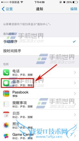 1)首先我们先打开【设置】,然后点击【通知】,接着打开【信息】。(如下图)