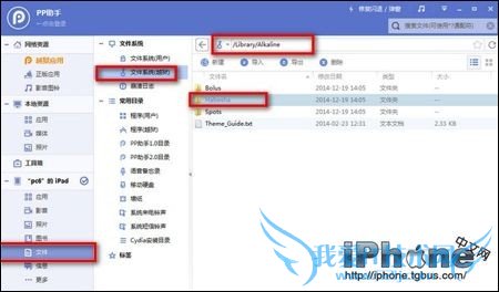 6、下载好之后解压到本地,然后使用苹果助手打开文件/Library/Alkaline,如下图所示。
