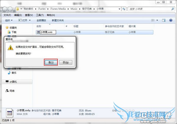 将文件的原扩展名.m4a改成.m4r,在弹出的对话框中点“是”。