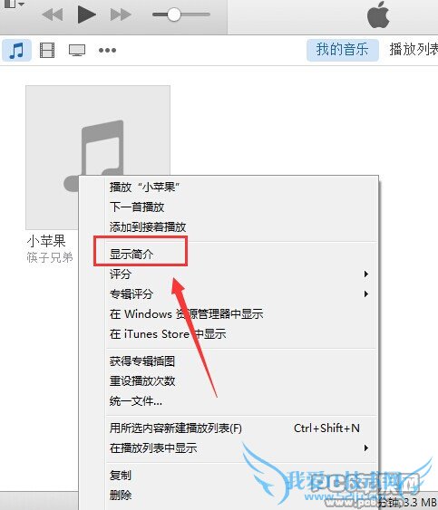 确定好开始时间与结束时间之后,对音乐单击右键,然后点击显示简介。