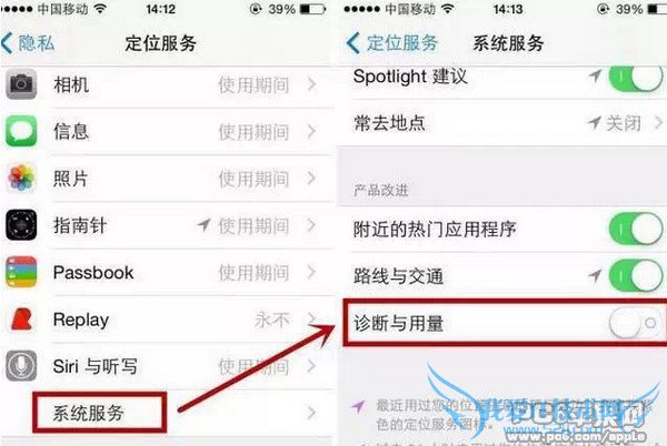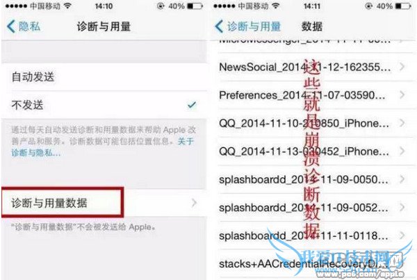 关掉方法:打开【设置】--【通用】--【关于本机】--【诊断与用量】--【不发送】;ios8的顺序是:设置-通用-隐私-诊断与用量