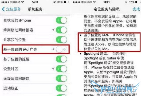 关掉方法:打开【设置】--【隐私】--【定位服务】--【系统服务】--【基于位置的iAd广告】--关闭