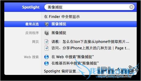 打开ImageCapture(图像捕捉),你可以向我一样先打开Finder,再在应用程序中一个个的看,也可以用一种简单的方法,通过“Spotlight”来搜索。