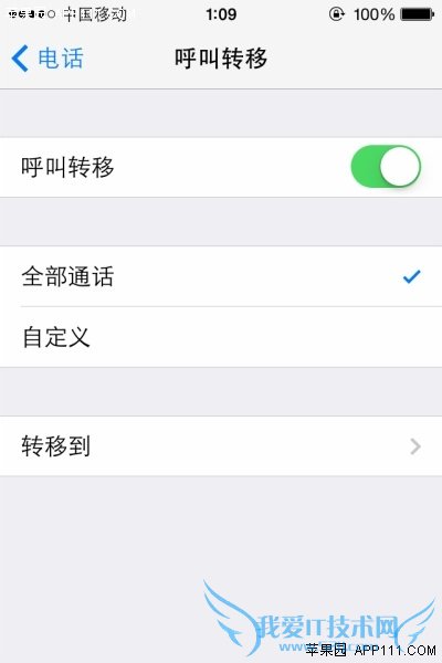 第三步,点击“转移到”,即可在“转移到”页面设置,设置可以转移到的电话号码,即可。
