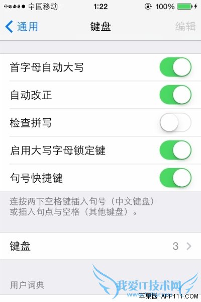 第二步,在“键盘”设置页面,点击使用“启用大写字母锁定键”即可。今后在输入时,只要连续按两下向上的箭头,即可实现大写锁定功能。