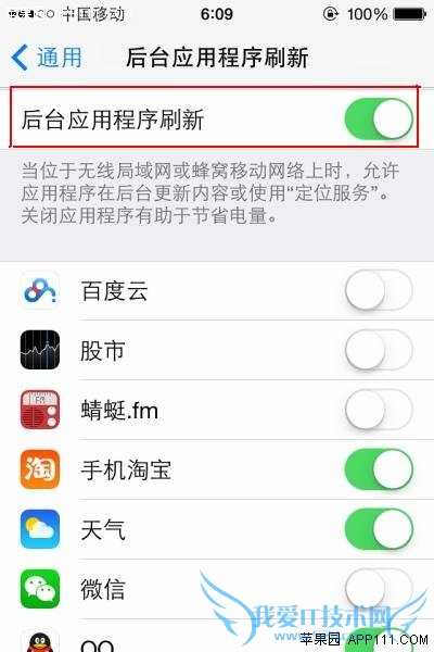第二步,在后台应用程序刷新页面,启用“后台应用程序刷新”功能,然后在下方应用列表中选择启用需要刷新的应用即可。
