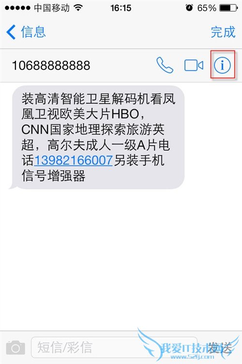 手机收到垃圾短信在所难免,以前的iOS系统需要借助第三方软件才能实现黑名单功能。而现在,在iOS7中,仅需进行如下简单的设置,即可快速将垃圾短信发件人设置到黑名单中: