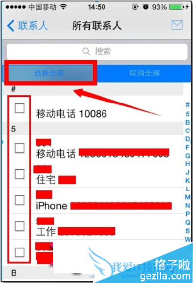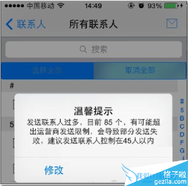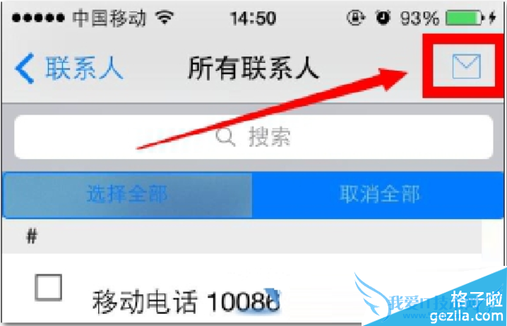 3:接下来就可以选择你要群发的对象,可以选择如图所示的“选择全部”或者自己一个个勾选,都是没问题的,选择好之后就点击右上角的信息图标,如图所示,如果你选择的群发对象超过45个的话系统会提示你人数过多,所以最好是一次群发45个比较保险。