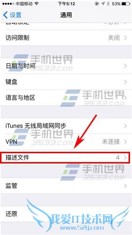 2)完成后打开若出现【未受信任】提示。点击【取消】,接着进入【设置】界面,再点击【通用】进入,点选【描述文件】。(如下图)