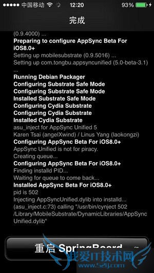 6.安装完成后重启springboard,至此Appsync已经安装完成