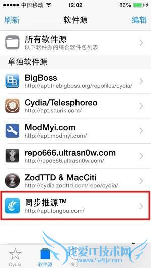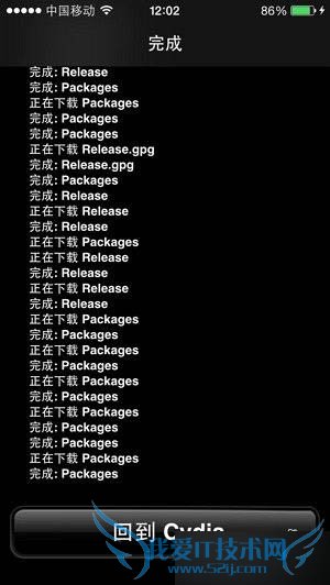 4.等待系统进行源的添加,添加完后点击底部 回到cydia,源已添加完成。