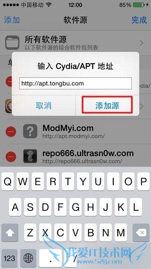 3.在弹出的输入框里输入apt.tongbu.com,点击添加源
