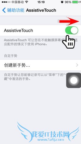 第2步:随后拖动功能名称右边的滑块开启该项功能即可。此时屏幕上即会出现虚拟HOME键。