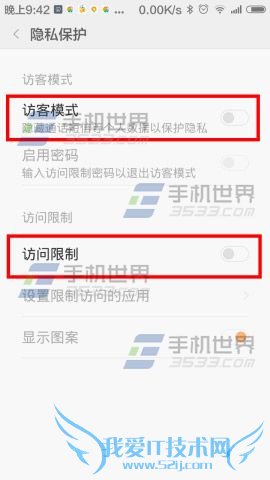 2)点击【隐私保护】,打开【访客模式】和【访问限制】。