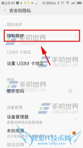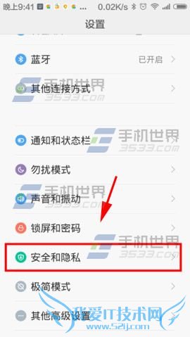 1)打开小米Note手机【设置】点击【安全和隐私】。