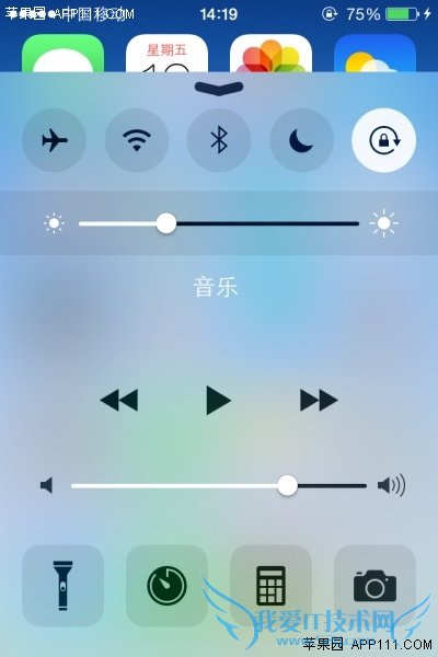 iOS8系统特别对控制中心进行了改进,调节亮度时,不再是整个手机屏幕都变亮或变暗,而是控制面板背后的背景变亮或变暗,这样不会影响之前调得屏幕过亮或者过暗而需反复调节了。