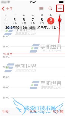 1)点击【日历】进入,再点选右上角【加号】图标。(如下图)