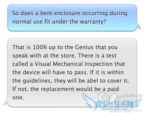 而当thenextweb询问具体的规定时,苹果售后代表表示,公司并没有向他们提供这方面的信息。另外,该名代表表示,希望thenextweb能够提供更加详细的信息,并将这一问题反映给更高一级的售后顾问。不难看出,苹果方面现在对这一问题还是相当重视的。
