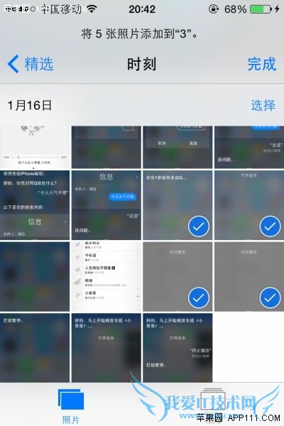 在iOS8系统中,创建新相册后,自然用户可以选择照片添加进去。具体操作方法如下: