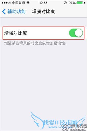 iOS 7本身是不让用户自定义Dock颜色功能的,不过系统辅助功能里自带的增强对比度功能却是可以帮助用户略微调整Dock颜色的。