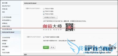 ¡¡¡¡3¡¢µ¥»÷ºó£¬Ôò»á³öÏÖÒ»¸öÒ³Ãæ£¬ÎÒÃǹ´Ñ¡ ¡°¿ªÆôPOP3·þÎñ¡± ºÍ¡°¿ªÆôIMAP·þÎñ¡±£¬µ¥»÷ ¡°±£´æ¡±¡£